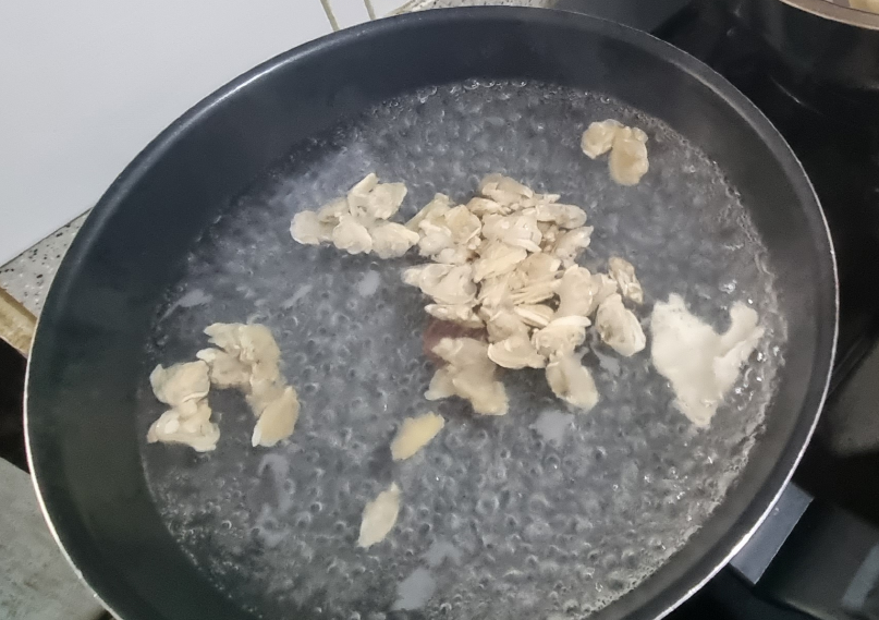 - Clam version: Boil clams + kelp for 10 min, remove kelp.