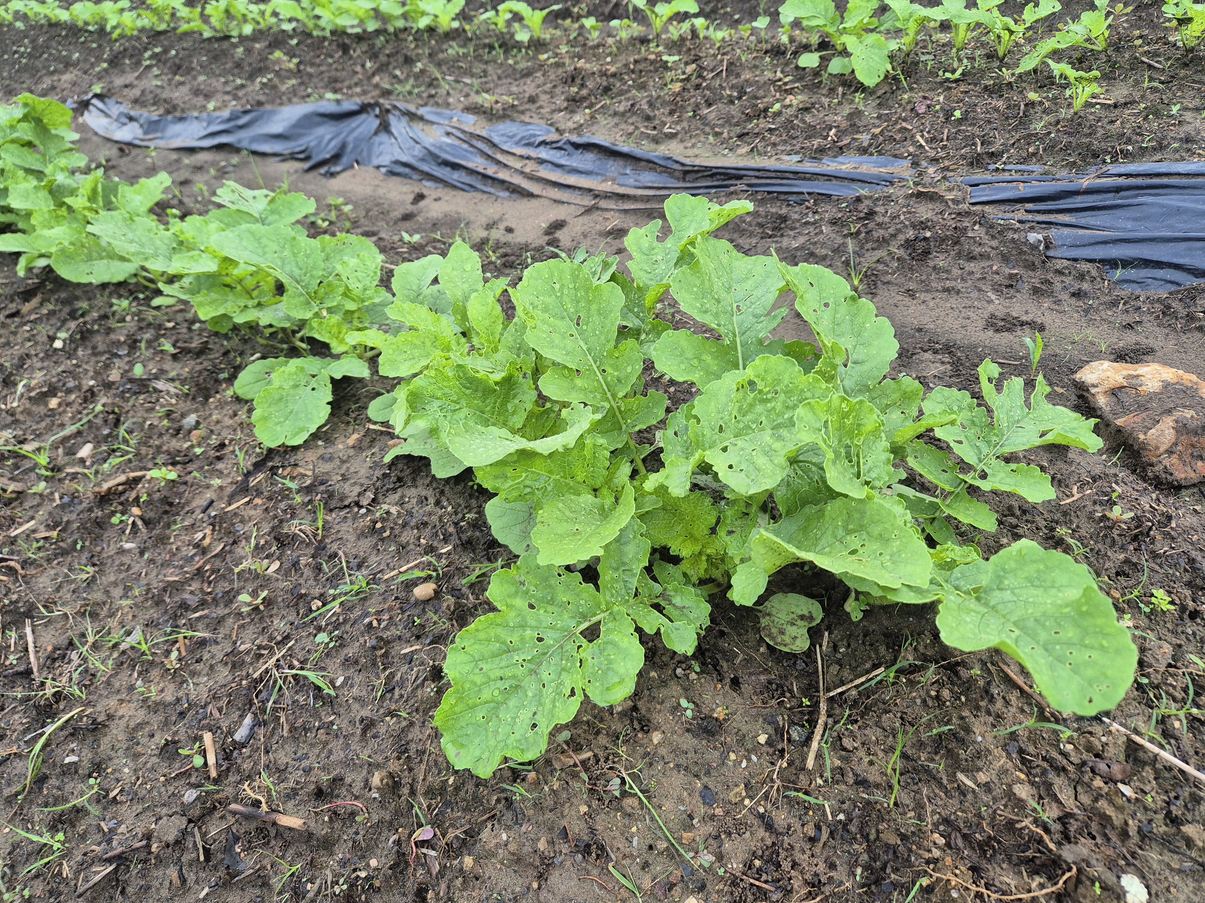 Radish, cabbage, scallions—this holy trinity of kimchi is now in the soil.