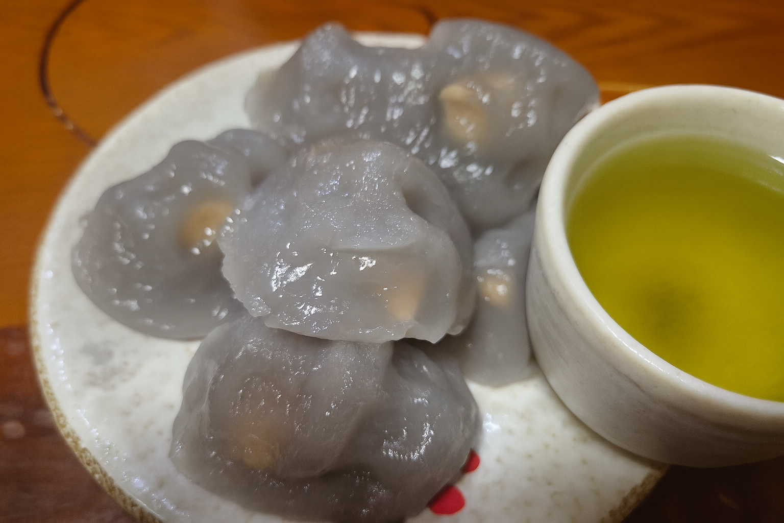 Gamja-tteok is made from grated potatoes and potato starch, filled with smooth white bean paste (흰팥 앙금), and steamed into soft, chewy cakes. It is simple, earthy, and deeply comforting — a true taste of rural Korea.