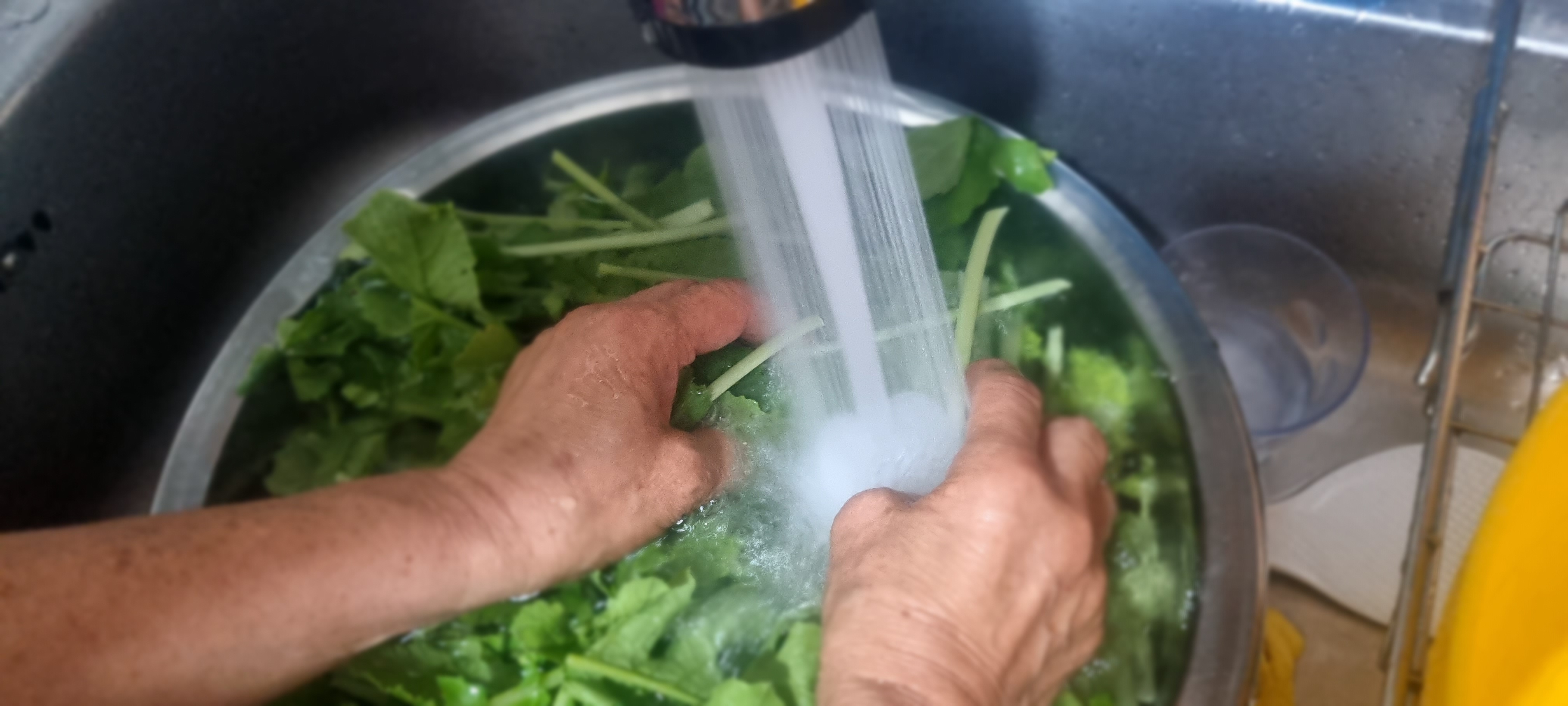 - Brine – Soak in salt water (2 liters water + ½ cup salt) for 1 hour, tossing halfway. Rinse twice and drain well.
